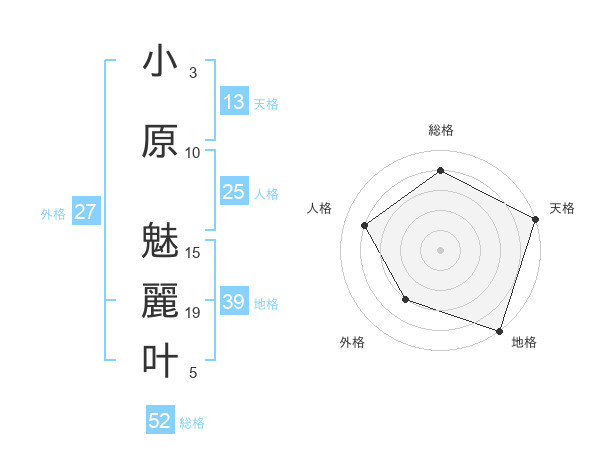 小原 魅麗叶さんの総格は52画の4点!