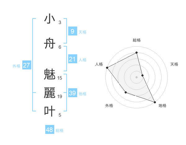 小舟 魅麗叶さんを姓名の画数から五運を鑑定