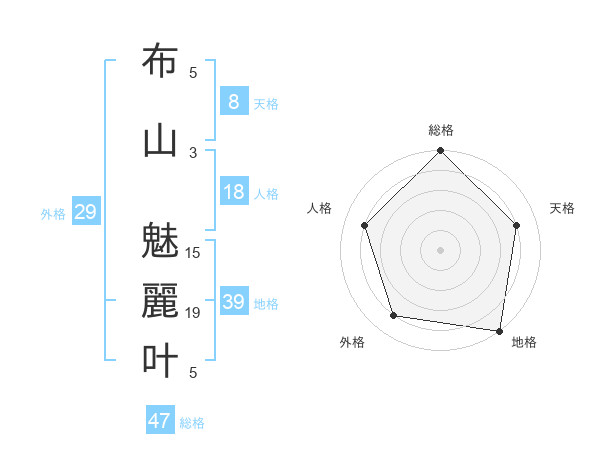 布山 魅麗叶さんを姓名の画数から五運を鑑定