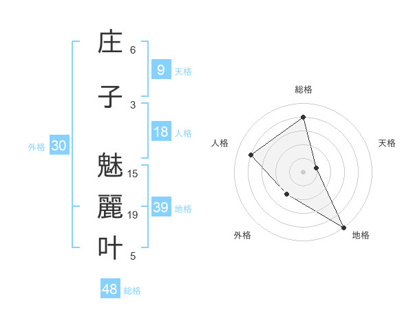 庄子 魅麗叶さんの地格は39画の5点!