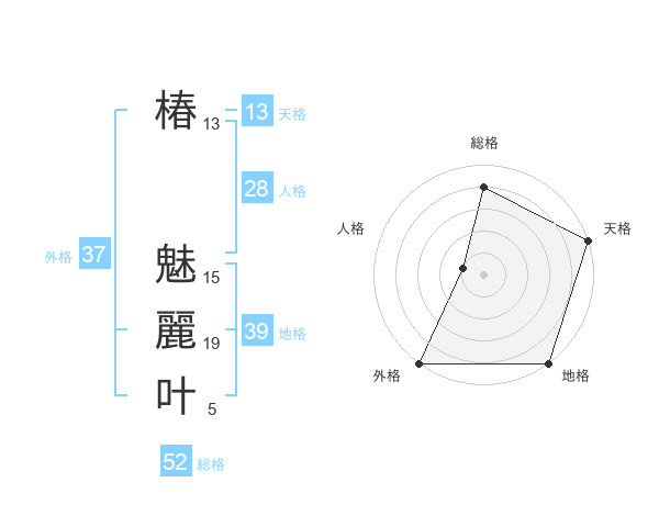 椿 魅麗叶さんの外格は37画の5点!