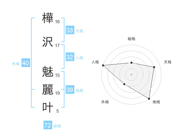 樺沢 魅麗叶さんを姓名の画数から五運を鑑定