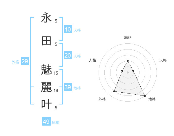 永田 魅麗叶さんを姓名の画数から五運を鑑定