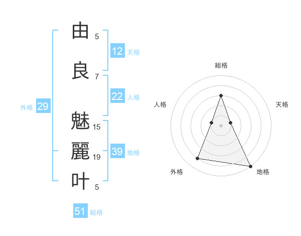 由良 魅麗叶さんを姓名の画数から五運を鑑定