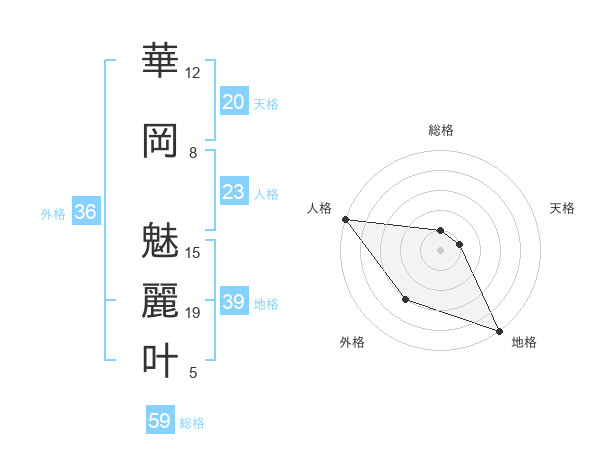 華岡 魅麗叶さんを姓名の画数から五運を鑑定
