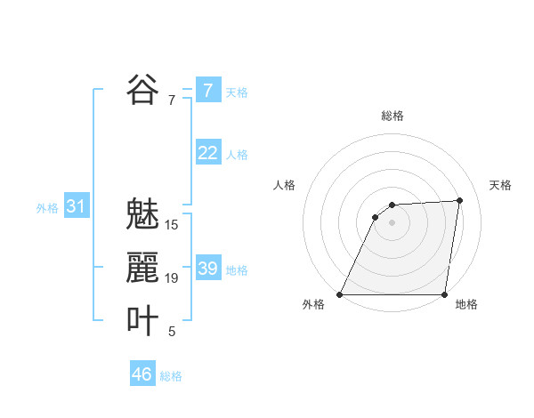 谷 魅麗叶さんを姓名の画数から五運を鑑定