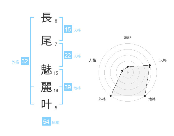 長尾 魅麗叶さんの外格は32画の5点