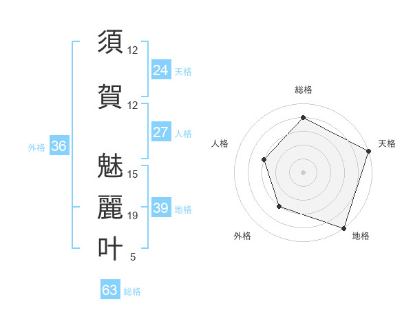須賀 魅麗叶さんの総格は63画の4点