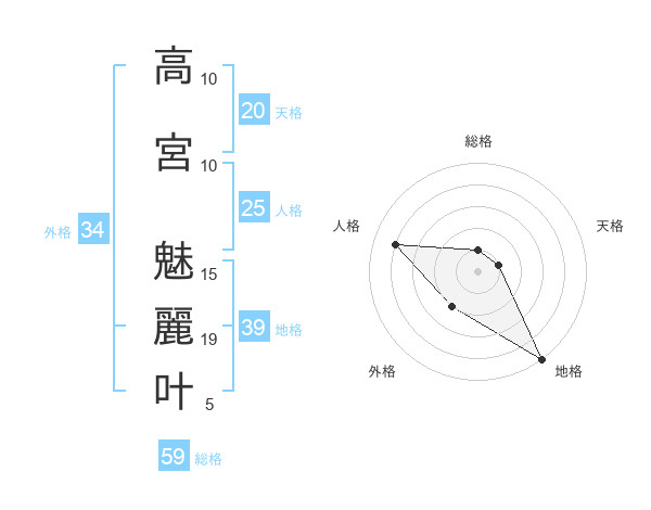 高宮 魅麗叶さんを姓名の画数から五運を鑑定