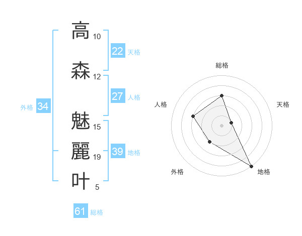 高森 魅麗叶さんを姓名の画数から五運を鑑定