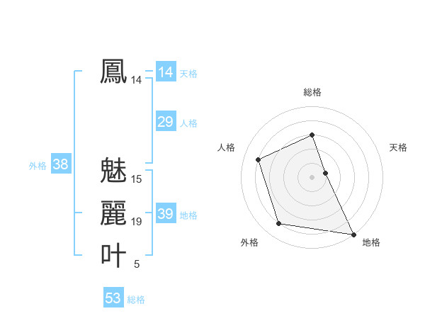 鳳 魅麗叶さんを姓名の画数から五運を鑑定