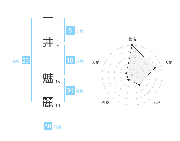 一井 魅麗さんを姓名の画数から五運を鑑定