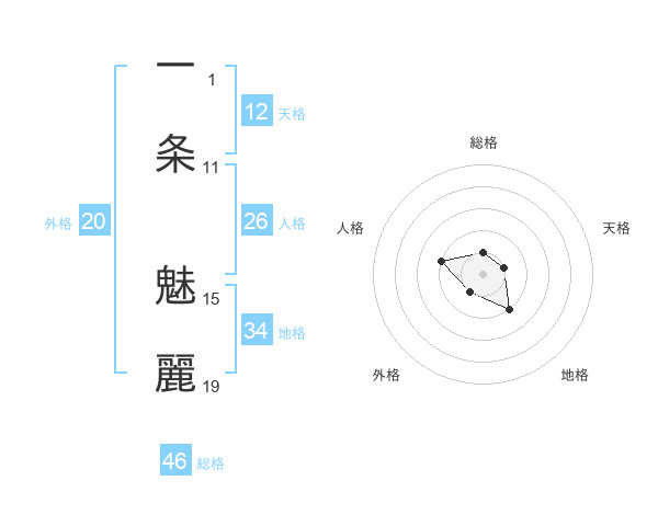 一条 魅麗さんの総格は46画の1点!
