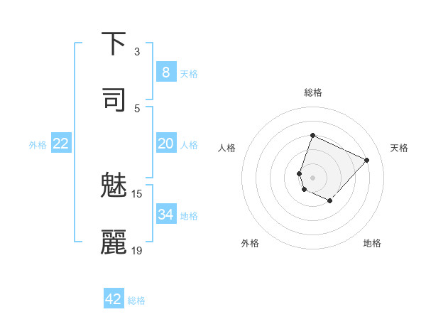 下司 魅麗さんを姓名の画数から五運を鑑定