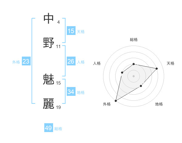中野 魅麗さんの総格は49画の2点!