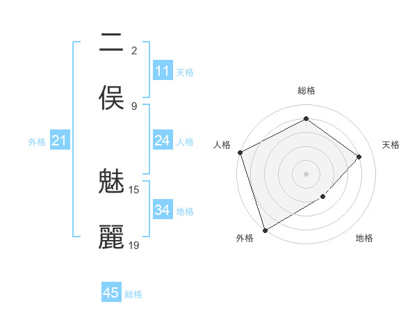 二俣 魅麗さんの総格は45画の4点!
