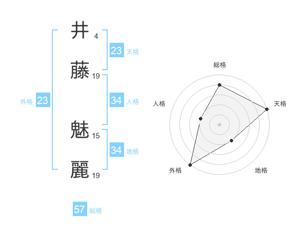 井藤 魅麗さんの総格は57画の4点!