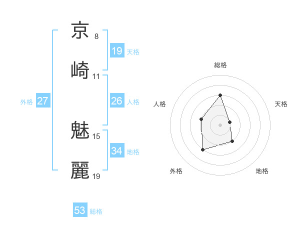 京崎 魅麗さんの総格は53画の3点!