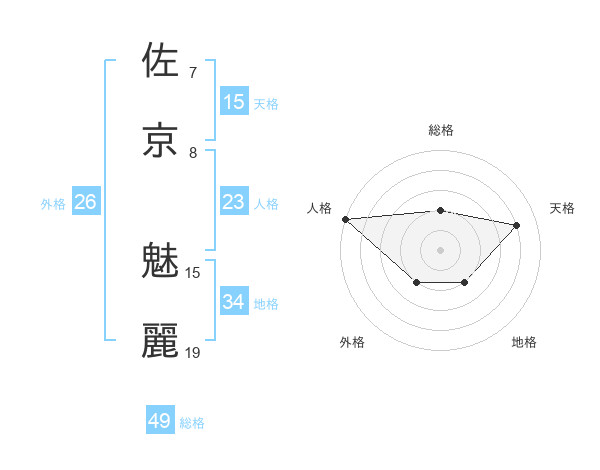 佐京 魅麗さんを姓名の画数から五運を鑑定