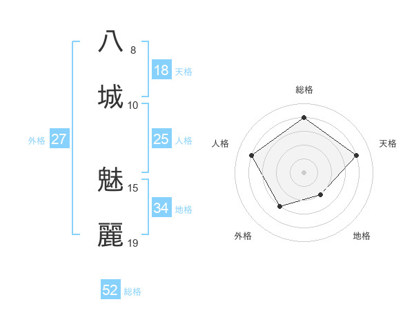 八城 魅麗さんの総格は52画の4点!