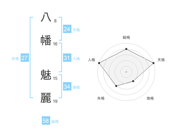 八幡 魅麗さんの天格は24画の5点!