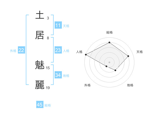 土居 魅麗さんを姓名の画数から五運を鑑定