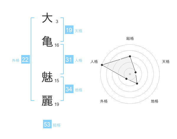 大亀 魅麗さんの総格は53画の3点!
