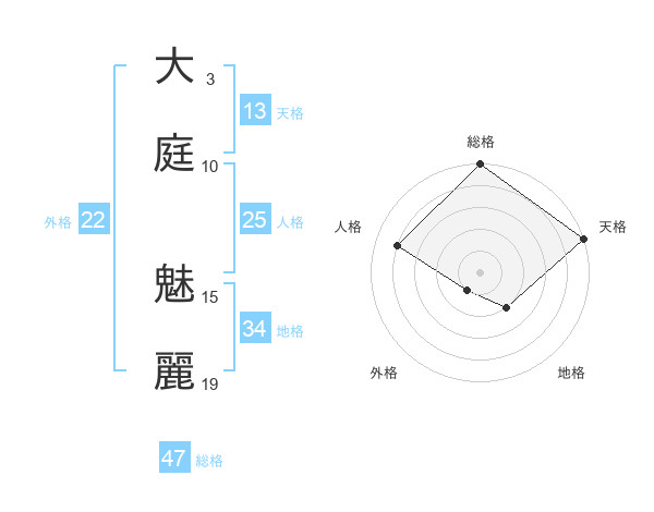 大庭 魅麗さんを姓名の画数から五運を鑑定