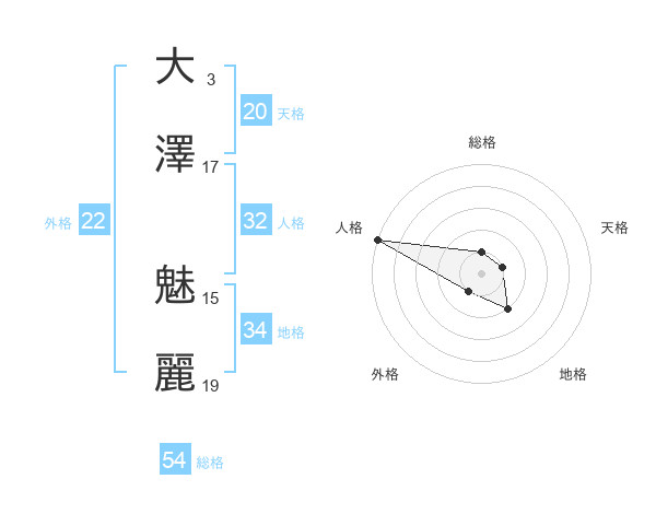 大澤 魅麗さんの外格は22画の1点!