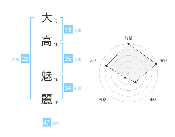 大高 魅麗さんを姓名の画数から五運を鑑定