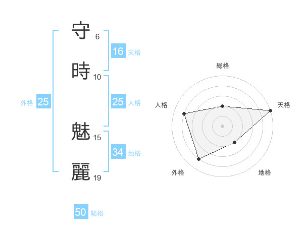 守時 魅麗さんの外格は25画の4点!