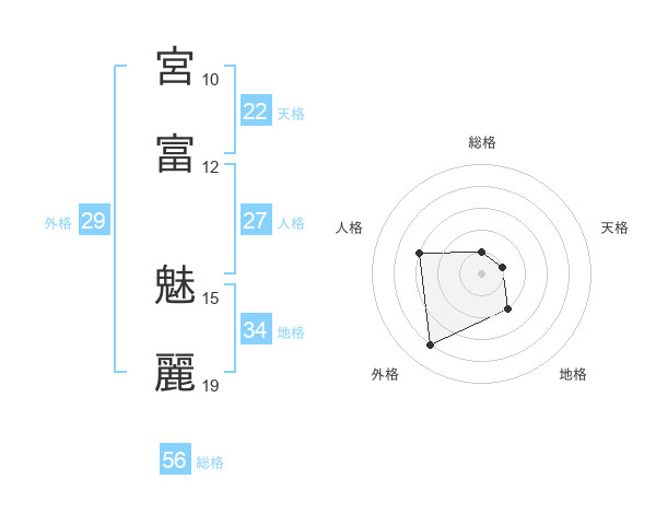 宮富 魅麗さんを姓名の画数から五運を鑑定