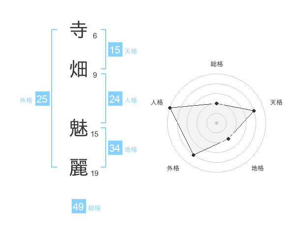 寺畑 魅麗さんの天格は15画の4点!