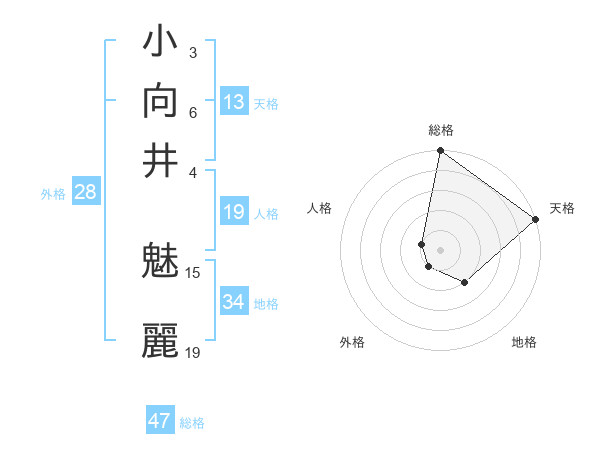 小向井 魅麗さんを姓名の画数から五運を鑑定