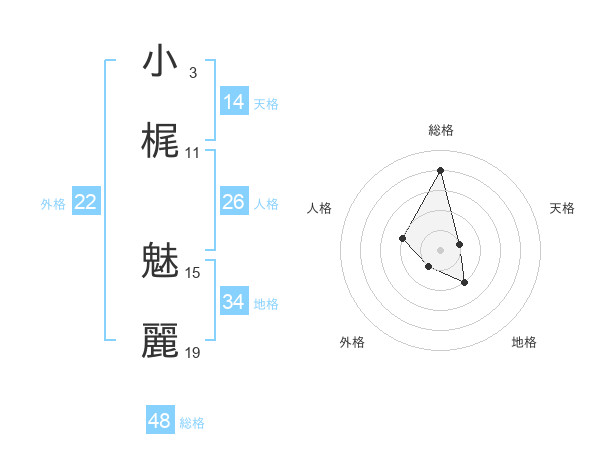 小梶 魅麗さんを姓名の画数から五運を鑑定