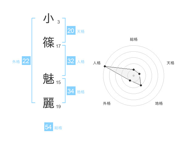 小篠 魅麗さんの天格は20画の1点!