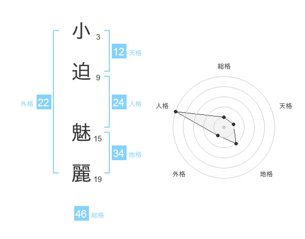 小迫 魅麗さんの外格は22画の1点!