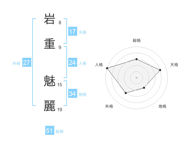 岩重 魅麗さんの総格は51画の3点!