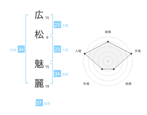 広松 魅麗さんの総格は57画の4点!