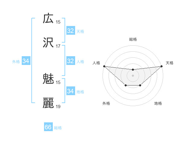 広沢 魅麗さんの天格は32画の5点!