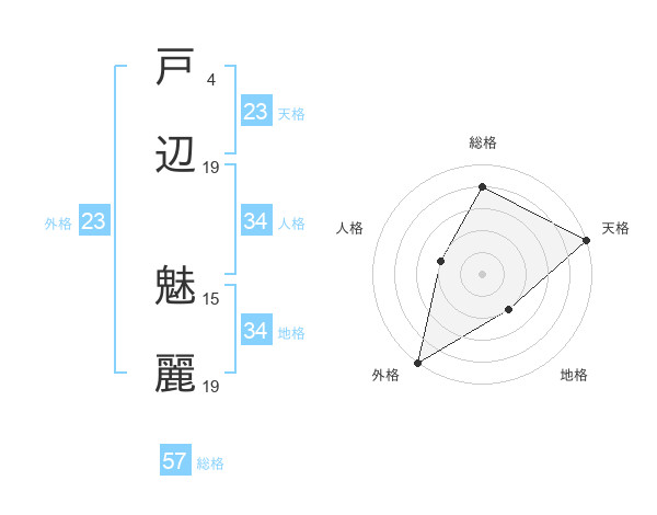 戸辺 魅麗さんの外格は23画の5点!