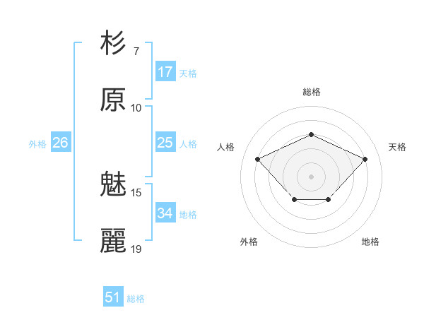 杉原 魅麗さんの天格は17画の4点!