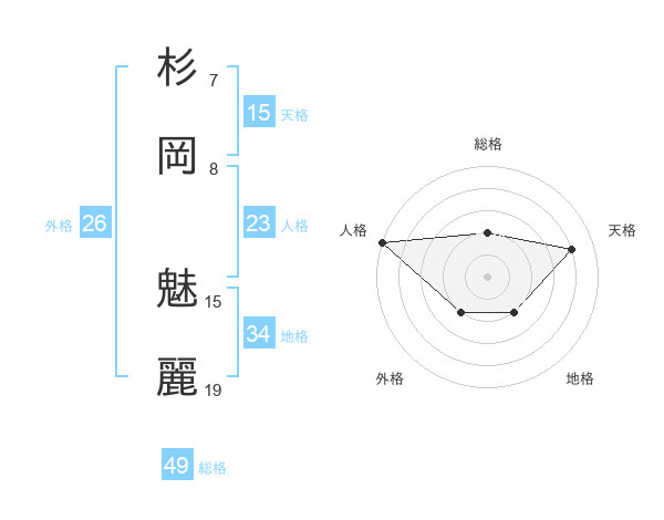 杉岡 魅麗さんの天格は15画の4点!