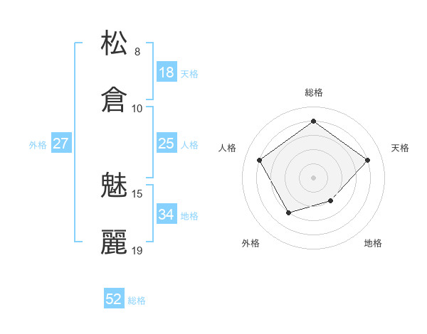 松倉 魅麗さんを姓名の画数から五運を鑑定