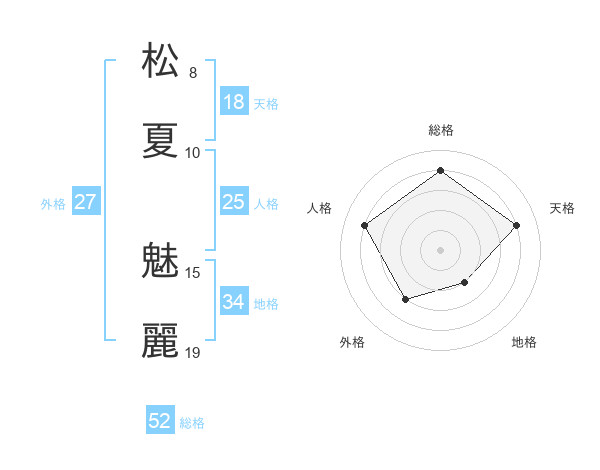 松夏 魅麗さんの総格は52画の4点!