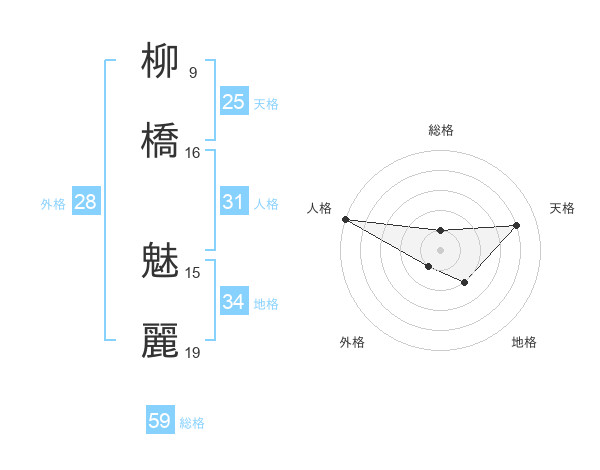 柳橋 魅麗さんを姓名の画数から五運を鑑定
