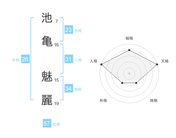 池亀 魅麗さんの総格は57画の4点!