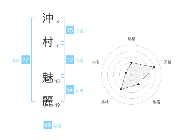 沖村 魅麗さんの総格は49画の2点!