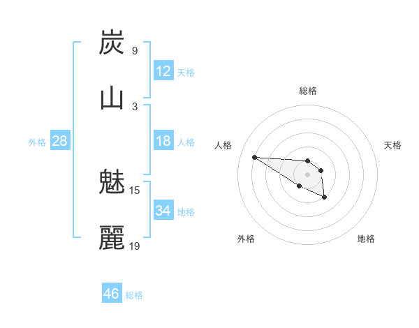 炭山 魅麗さんを姓名の画数から五運を鑑定