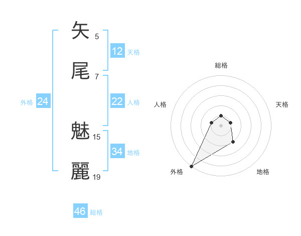 矢尾 魅麗さんの外格は24画の5点!